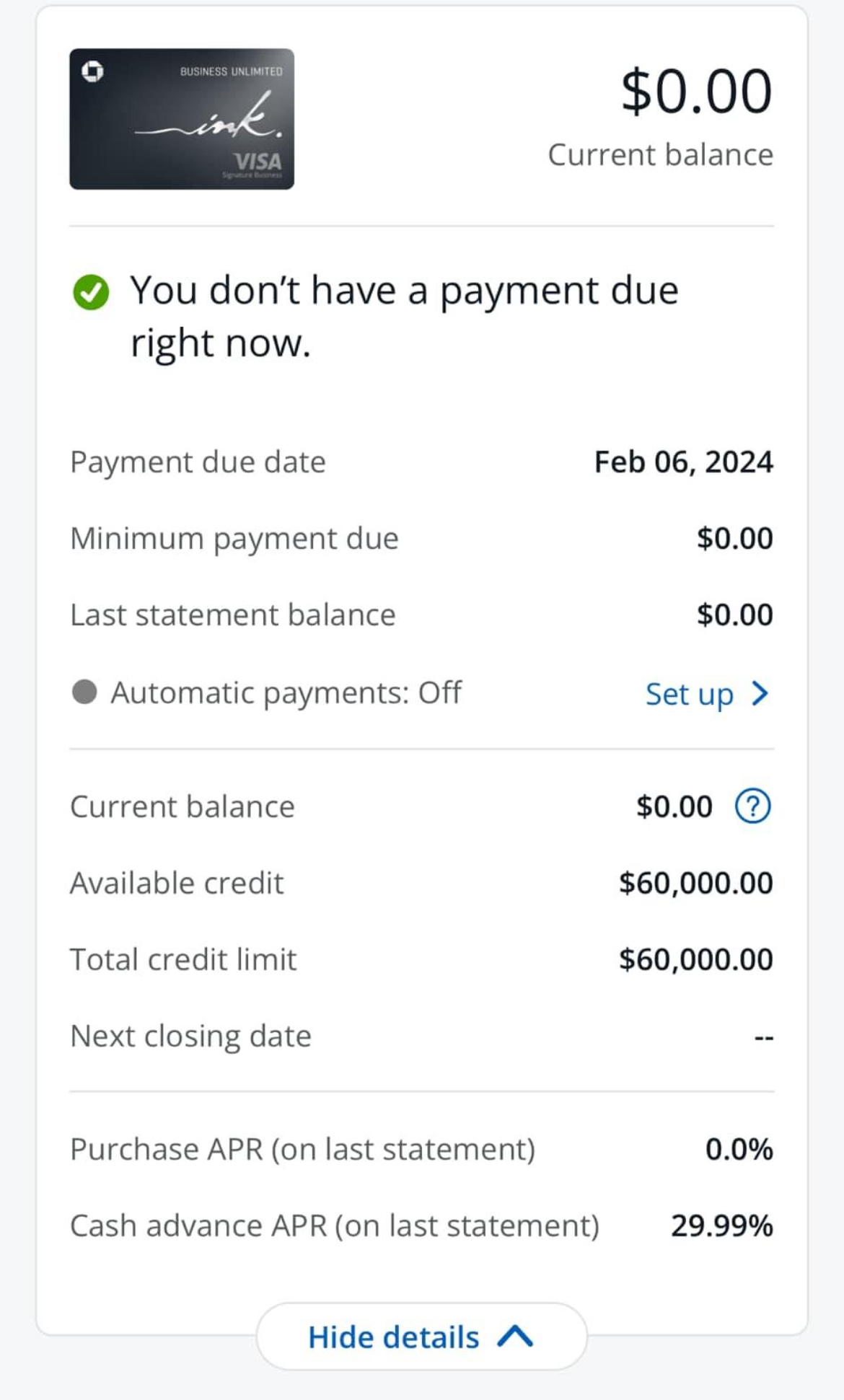 We were able to fund him with $100,000 of 0% APR business credit card even with a brand new LLC, with little to no transactions in just 2 months.