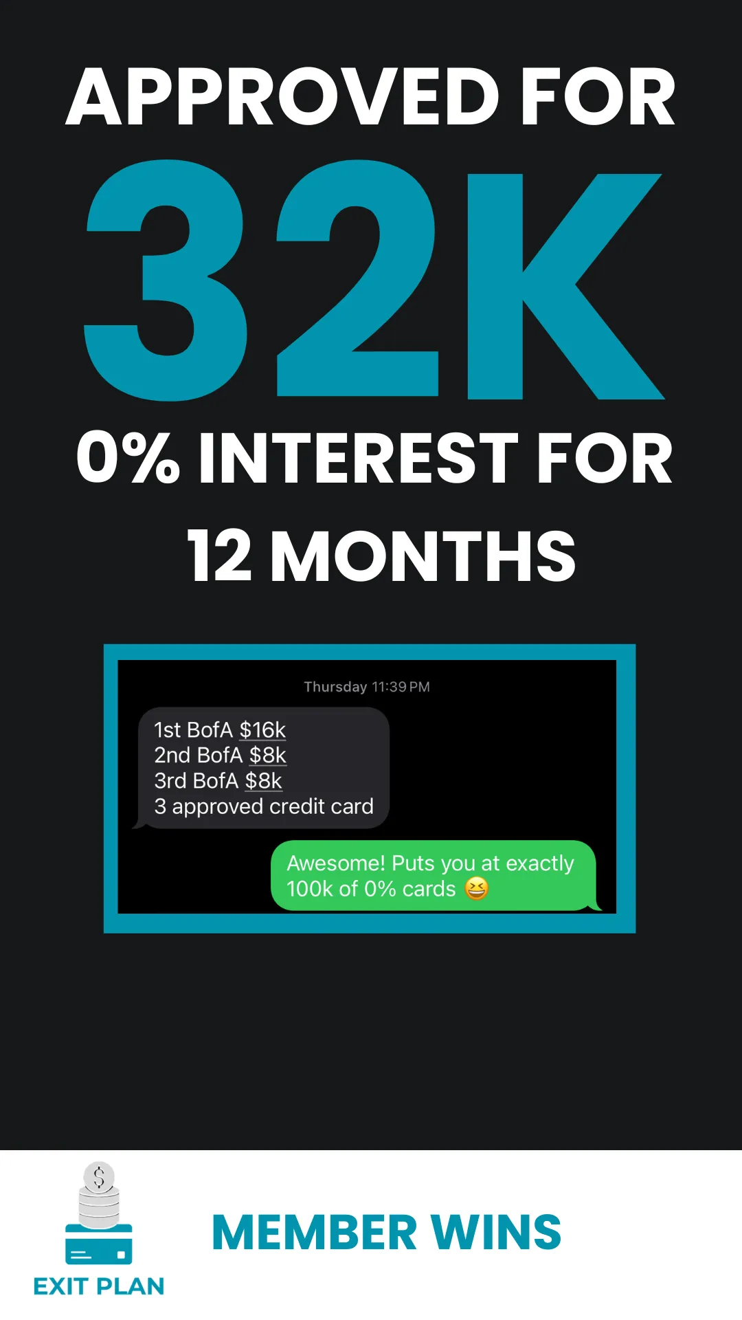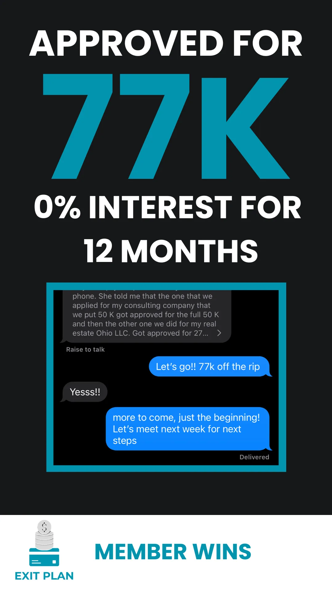 Upon initiation, Ben's sole request was, "I just need funding to manage the initial expenses without depleting my own account." He was confident about closing clients and generating enough revenue for repayment. But, he desired to break free from the cycle of risking his personal savings. Exit Plan assessed his financial standing and created a comprehensive strategy customized for him. Ben then received approvals for a combined amount of $100,000 across three credit cards.